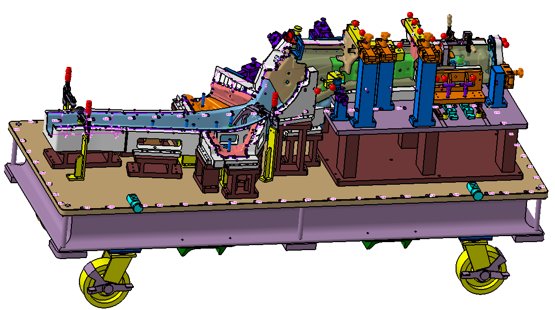 We build this checking fixture to check the part-INNER PANEL ASSY SIDE WALL BEH RH if it meet serious requirements of customers.The body of this checking fixture is made by aluminum and some of components are dealt with plating.Our customer agreed with checking fixture design and assembly and CMM report.
