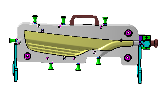 We build this checking fixture to check the part-SIDE TRIM BEHIND LT RH if it meet serious requirements of customers.The body of this checking fixture is made by aluminum and some of components are dealt with plating.Our customer agreed with checking fixture design and assembly and CMM report.